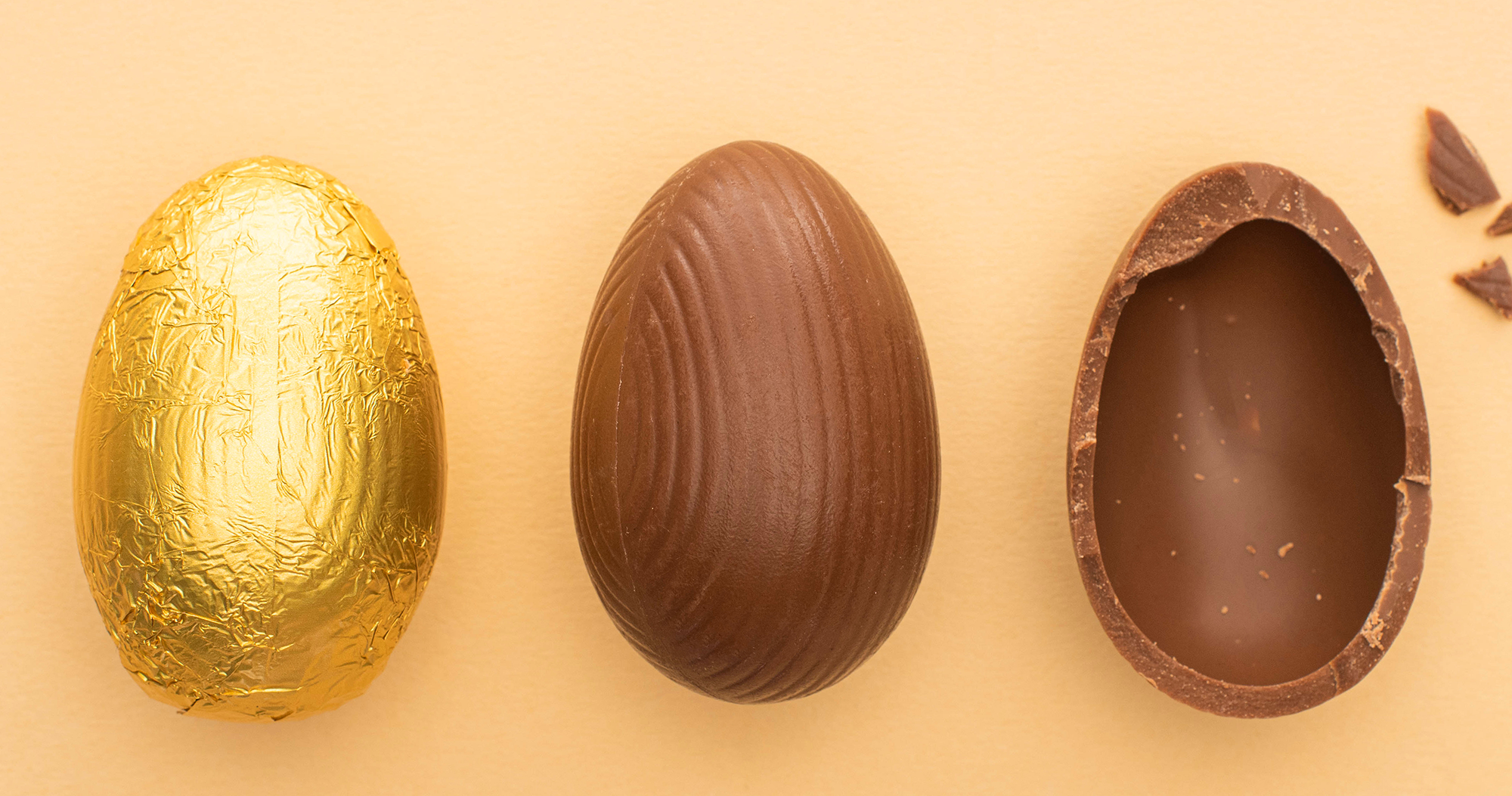 Ovos de chocolate: Ovo de páscoa trufado; Ovo de páscoa marmorizado; Ovo de páscoa crocante.